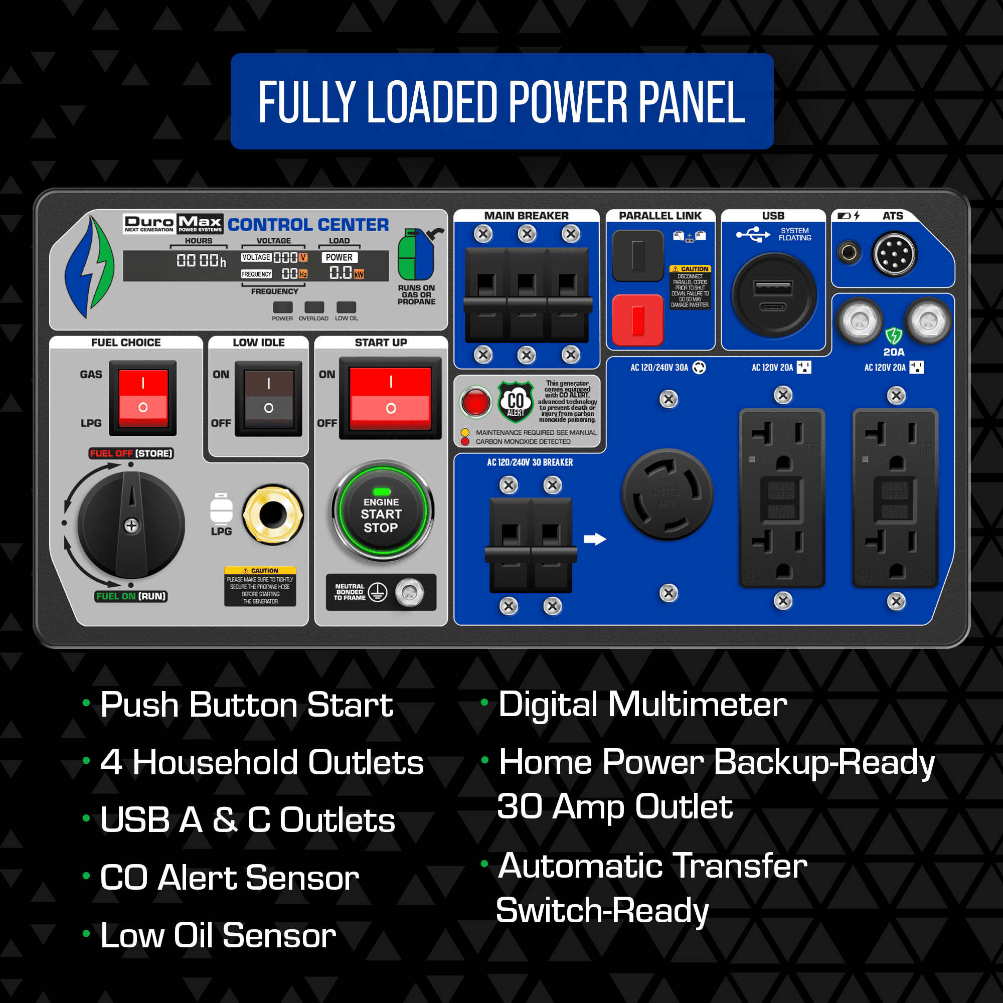 Duromax Xp12000hx 12 000 Watt Portable Dual Fuel Gas Propane Co Alert Maxtool